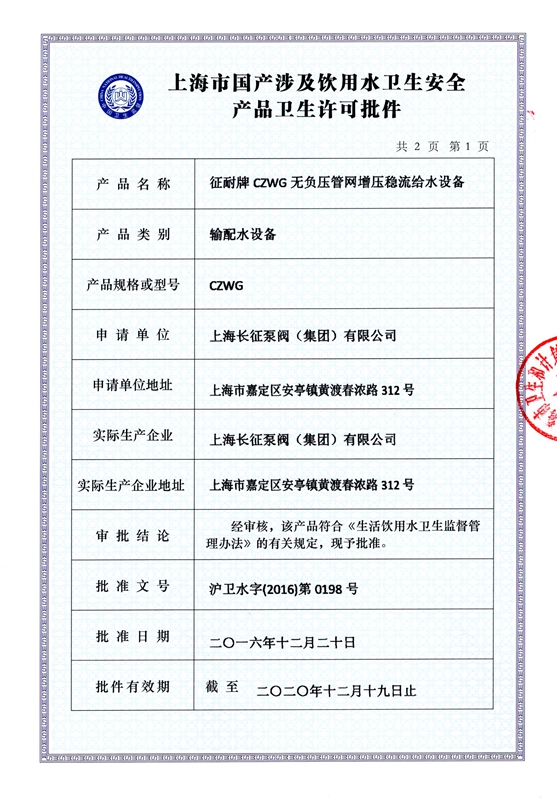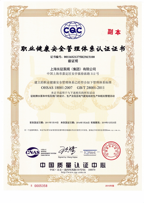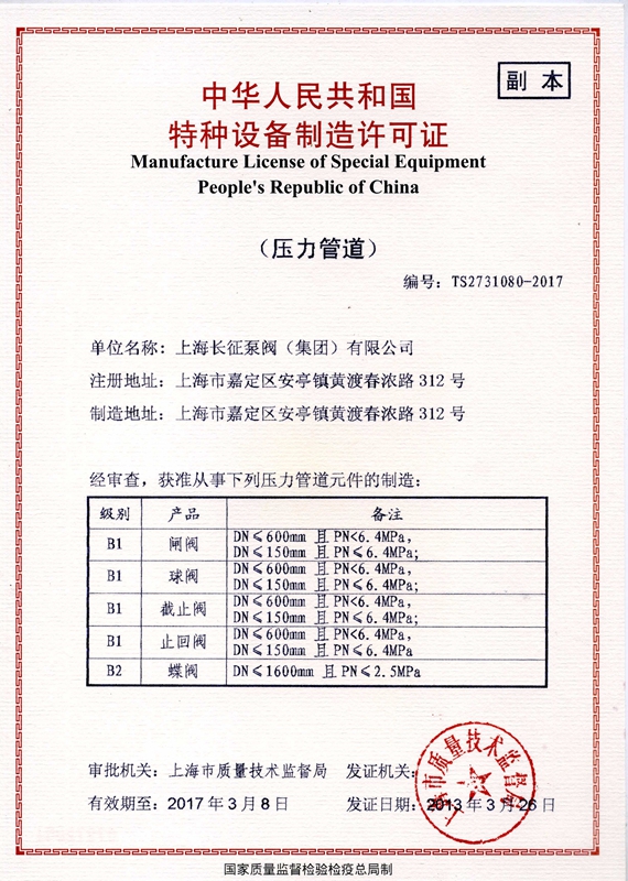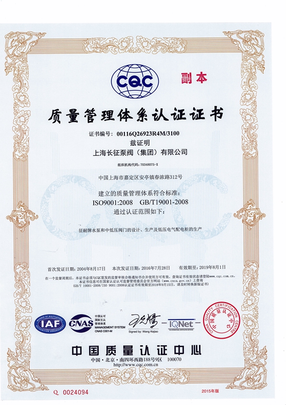 上海長(zhǎng)征泵閥(集團(tuán))有限公司引進(jìn)了先進(jìn)數(shù)控機(jī)床、加工中心、大型立車(chē)、臥式鏜床、國(guó)家B等級(jí)水泵廠家測(cè)試中心、國(guó)內(nèi)一流離心泵生產(chǎn)設(shè)備。以下是公司部份資質(zhì),點(diǎn)擊可放大查看。