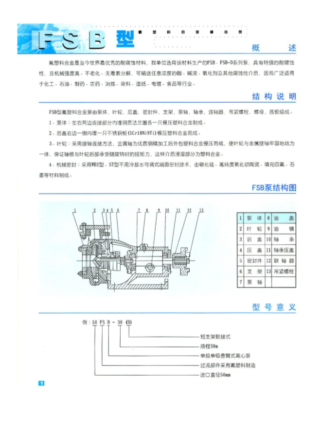 FSB型氟塑料離心泵特點(diǎn)