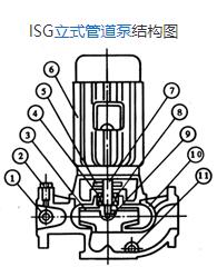 立式管道離心泵結(jié)構(gòu)說明 1、泵與電機(jī)同端蓋,軸向尺寸縮短,結(jié)構(gòu)簡單 2、泵體上設(shè)有取壓孔和放水孔 3、泵體上設(shè)有排氣閥,工作前能排放泵內(nèi)空氣 4、泵的底部設(shè)有安裝底閥和螺栓孔,可以保證整體機(jī)組安裝穩(wěn)固 |