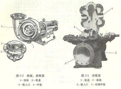 1)具有水平接縫的泵(中開(kāi)式)——通過(guò)泵軸中心線的水平面上開(kāi)有泵體接縫的泵(圖2-3)。