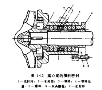 環(huán),環(huán)上開有若干小孔,水封環(huán)對準水封管。水泵運行時,泵內(nèi)壓力較高的水,通過水封