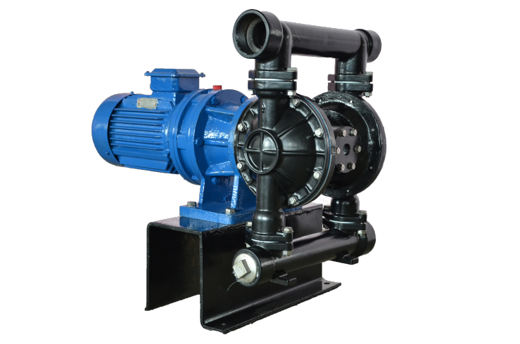 - 電動(dòng)隔膜泵: 電動(dòng)隔膜泵是另一種常見的隔膜泵類型。它是通過電動(dòng)機(jī)作為驅(qū)動(dòng)裝置,驅(qū)動(dòng)隔膜進(jìn)行往復(fù)運(yùn)動(dòng),從而實(shí)現(xiàn)液體的泵送。電動(dòng)隔膜泵具有結(jié)構(gòu)緊湊、穩(wěn)定性好、泵送流量精確可控等特點(diǎn)。由于使用電動(dòng)動(dòng)力源,它適用于需要精確流量控制的場(chǎng)合,也可以用于處理高粘度液體和含有固體顆粒的液體。